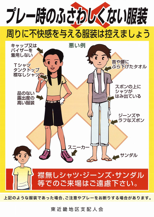 ※クラブハウス内では脱帽願います。 - ハーフパンツを着用の場合はくるぶしが隠れる丈のソックスを着用ください。